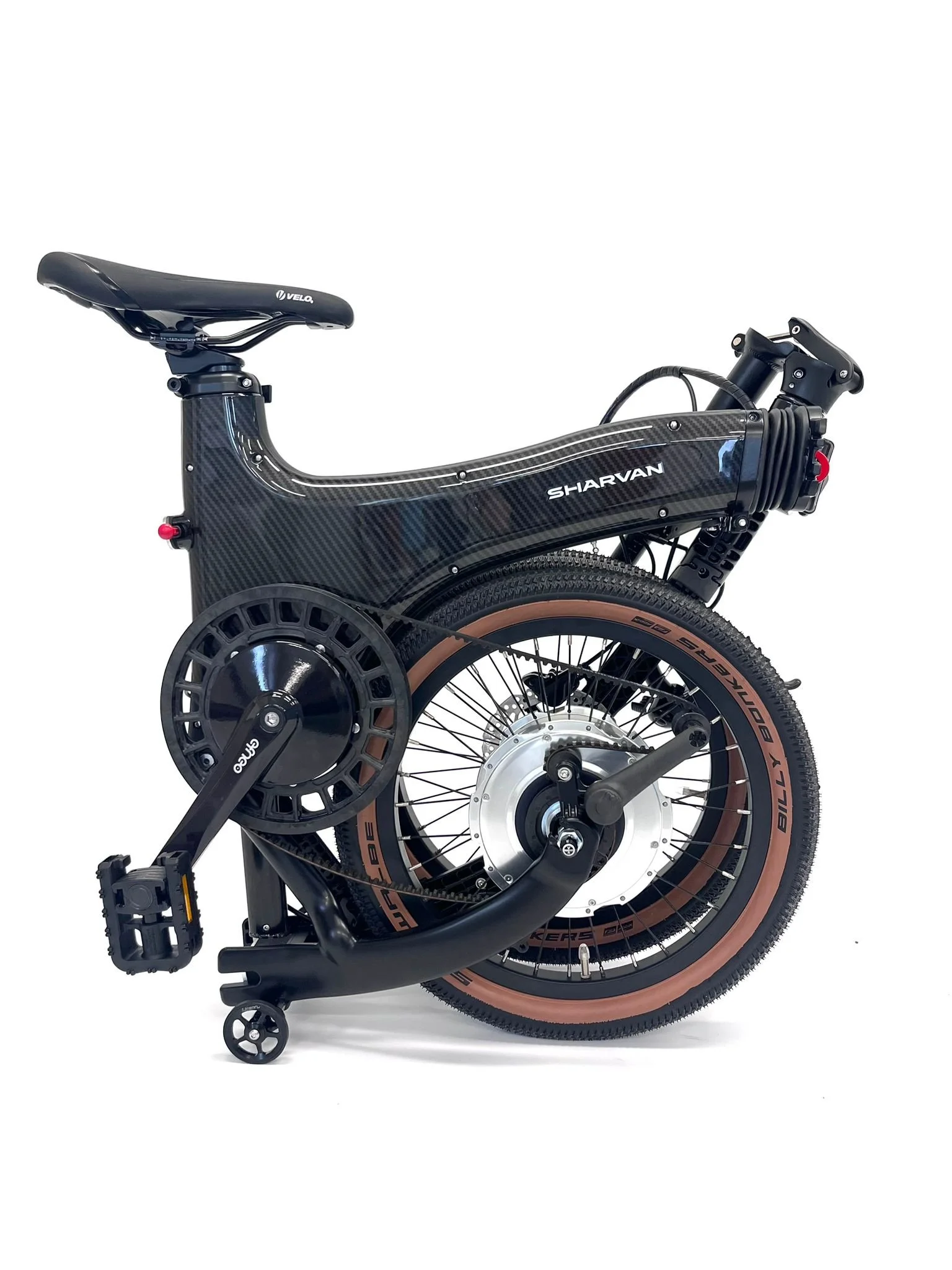 The e-Sharvan bike combines the unique design of a growing and folding bike in combination with a ZEHUS electric motor, specifically the All In One type.